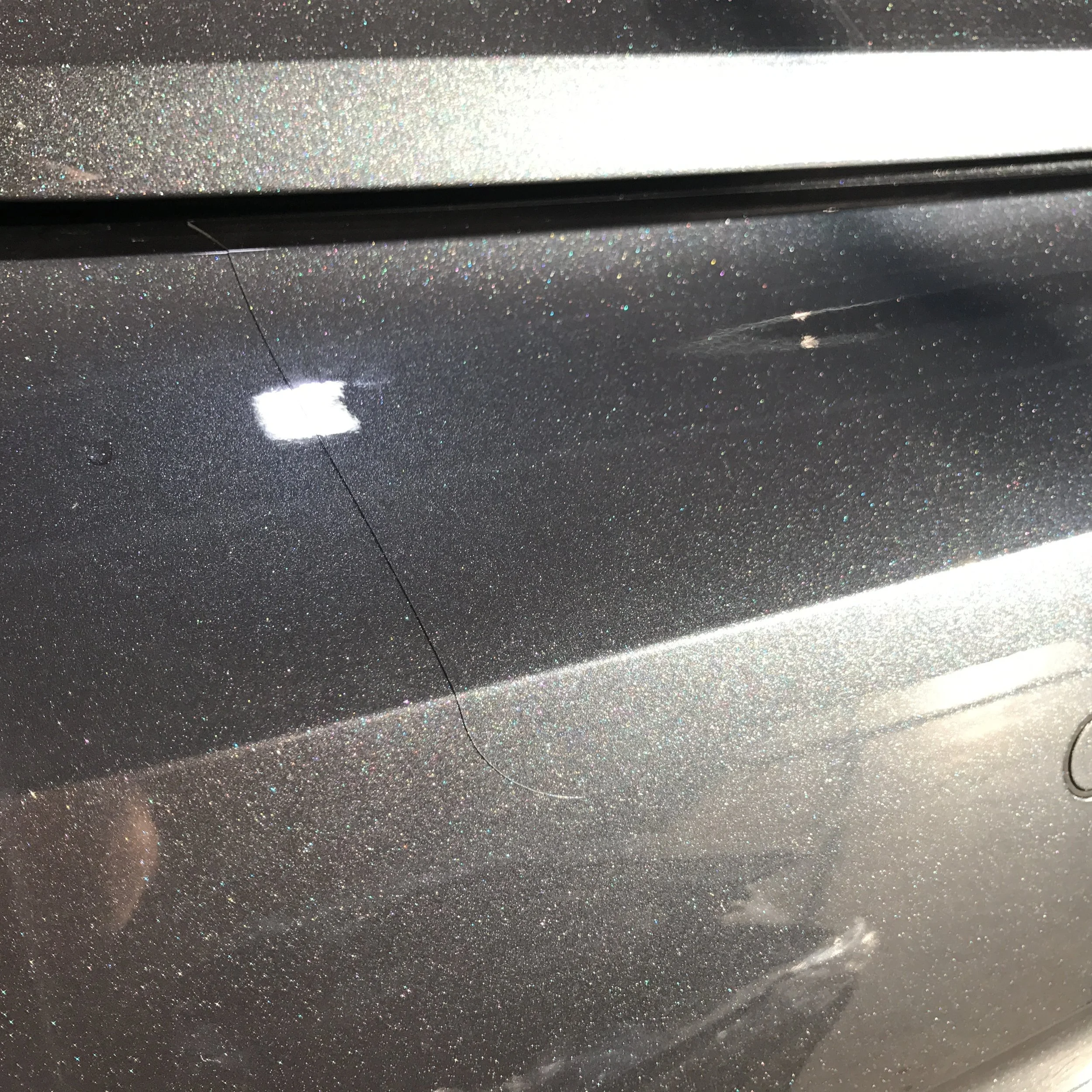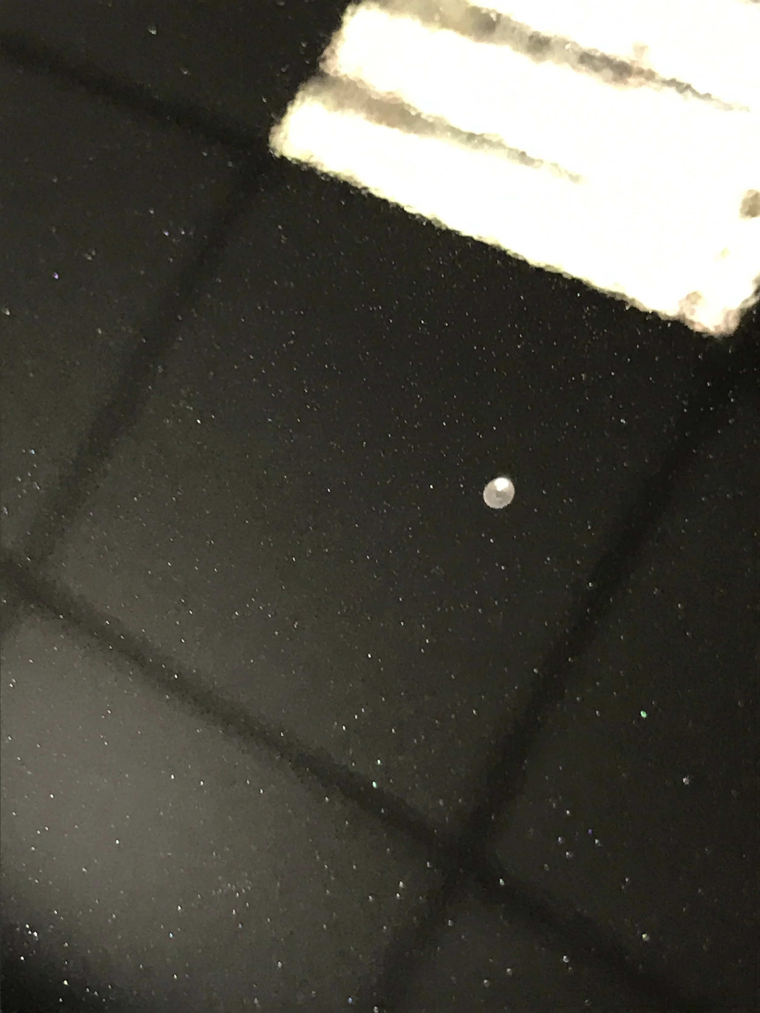 Helytelenül telepített fólia alatti lakkfelületbe ágyazódott felületi szennyeződés, porszem